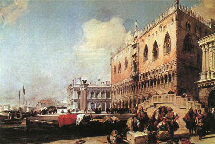 Bonington, Richard Parkes, engleski slikar (Arnold, 25. X. 1801 – London, 23. IX. 1828). Živio u Francuskoj; pohađao Akademiju Julien u Parizu. Pod utjecajem francuskih romantičara, poglavito → Eugenea Delacroixa i romanopisca → Waltera Scotta, profinjenim crtežom i svijetlim koloritom slikao uglavnom u akvarelu marine, krajolike, vedute talijanskih gradova i povijesne scene te litografirane crteže s motivima iz Pariza i Normandije (Pogled na Jadran; Sta Maria della Salute u Veneciji). Sa → Johnom Constableom i Copleyem Fieldingom utjecao na slikare barbizonske škole.