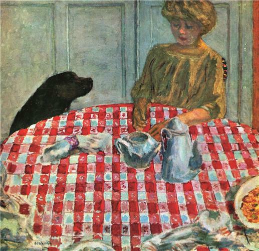 Bonnard, Pierre, francuski slikar (Fontenay-aux-Roses, 3. X. 1867 – Le Cannet, 27. I. 1947). Školovao se na Akademiji Julian u Parizu; jedan od utemeljitelja grupe → Nabis. Najprije pod utjecajem P. Gauguina i japanskoga drvoreza radi plakate i dekorira predmete primijenjene umjetnosti. U ulju svijetlim profinjenim koloritom slika prizore pariških ulica, krajolike i mrtve prirode (Obala Seine). Kasnija zrela djela obuhvaćaju slike interijera u toplim i jarkim tonovima kojima ostvaruje vedar i opušten ugođaj (Stolnjak s crvenim četvorinama; Pogled u vrt, 1931). Radio scenografije (Alfred Jarry, Kralj Ubu), ilustrirao Paula Verlainea (Daphne i Cloe).