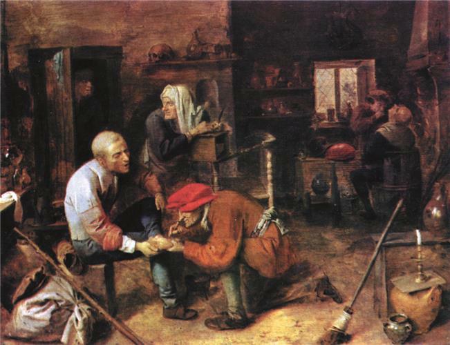 Brouwer, Adriaen, flamanski slikar (Oudenaarde, Flandrija, 1605/6 – Antwerpen, 1. II. 1638). Učenik Fransa Halsa u Haarlemu. Jedan od najvažnijih slikara žanr-scena XVII. stoljeća. Pretežno u malim formatima slika bogatim koloritom toplih i prigušenih tonova naturalističke prizore iz krčme, zatvora, likove seljaka, kartaša, kockara, liječnika, vidara, vojnika i sl. u kojima povezuje pučki realizam → Pietera Bruegela i dramatičnost flamanskog slikarstva (Krčma; Kartaši; Autoportret s lulom). Naslikao samo nekoliko krajolika koji kao neposredan doživljaj prirode anticipiraju → Johna Constablea i → Camillea Corota.