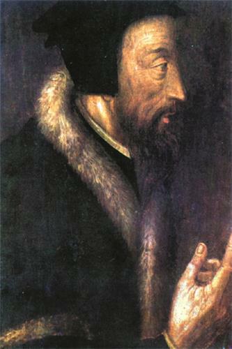 Calvin, Jean, francuski vjerski reformator, osnivač → kalvinizma (Noyon, 10. VII. 1509 – Ženeva, 27. V. 1564). Pristaša Lutherove reformacije, zbog čega mora napustiti Pariz; boravi u Strasbourgu, Baselu i Ženevi, gdje osniva novu frakciju reformacijskog pokreta – kalvinizam; u gradu ostvaruje model nove zajednice s izrazito strogom vjerskom disciplinom, proganja i pogubljuje protivnike, “krivovjerce”. Kalvinizam se proširio u Francuskoj, Engleskoj, Nizozemskoj, Njemačkoj, Mađarskoj i skandinavskim zemljama. Francuski kalvinisti (hugenoti) protivnici su Katoličke lige, zbog toga je u Francuskoj vođeno 8 hugenotskih ratova i progona (1562–88), najpoznatiji je → Bartolomejska noć. Calvin u teologiji zastupa apsolutnu predestinaciju i rigorizam; glavno djelo Zasada kršćanske religije, 1536.