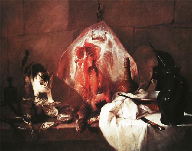 Chardin, Jean Siméon, francuski slikar (Pariz, 2. XI. 1699 – Pariz, 6. XII. 1779). Kratko vrijeme učenik Pierrea Jacquesa Cazesa i Noëla Coypela. Jedan od najznačajnijih slikara poetičnih i realistički naslikanih mrtvih priroda, prizora u interijerima i portreta XVIII. stoljeća u francuskom slikarstvu. Motivi građanskih interijera s likovima u zatvorenim, pretežito tamnim prostorima, nastali su pod utjecajem holandskih žanr-scena (Odgojiteljica; Doručak). Na brojnim, jednostavno komponiranim mrtvim prirodama pokazuje predmete vjerno i sažeto; pozornost posvećuje izradi detalja i rafiniranim nijansama boje koje uz ostalo pridonose monumentalnom izgledu njegovih ostvarenja (Srebreni vrč; Bakreni kotao i mrtvi zec; Mrtva priroda sa šalicom). Portrete, uglavnom djece, vezuje s nekom radnjom i tematski poistovjećuje sa žanr-scenom (Djevojčica s reketom; Dječak sa zvrkom; Mala učiteljica; Kula od karata). Potkraj života je oslijepio i radio isključivo u pastelu (Autoportret).