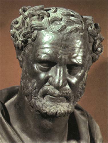 Demokrit (grčki: Démókritos), grčki filozof i učenjak (Abdera, oko ←460 – Abdera, oko ←370). Leukipov učenik; suvremenik Anaksagore, Sokrata i Hipokrata. Njegova djela, pisana jonskim dijalektom, obuhvaćala su matematiku, astronomiju, fiziku, biologiju, medicinu, filologiju, geografiju, etiku i filozofiju. Malo je naslova sačuvano. Glavni predstavnik atomizma u antičkoj filozofiji. Smatra da se svijet sastoji od mnoštva atoma i prazna svemirskog prostora, te da se istinska spoznaja temelji na racionalnom mišljenju, a uzdizanje nad osjetilnošću je i spoznajni i etički postulat. Život nakon smrti i natprirodni svijet bogova drži neuspjelim pokušajem neuka čovjeka da objasni prirodne pojave pred kojima osjeća strah. Godinama je njegova ideja o atomskoj građi živjela kao prirodnofilozofska hipoteza, dok nije postala osnovom kemiji i suvremenoj atomistici.