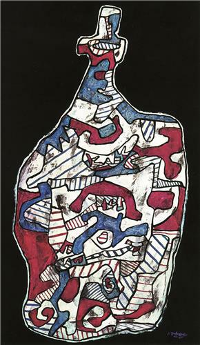 Dubuffet, Jean, francuski slikar i kipar (Le Havre, 31. VII. 1901 – Pariz, 12. V. 1985). Započeo slikati u poznoj dobi; autodidakt; tvorac i glavni predstavnik → art bruta (sirove umjetnosi). Redukcijom intelektualnih procesa i odbacivanjem uvriježenih normi ponašanja zagovara povratak dječjoj naivnosti, instinktu i neiskvarenosti. U svoje slike amorfne strukture, debelih i nekontroliranih namaza boje unosi najraznolikije predmete iz svakodnevice (ciklus Tijela žena). Jedan od glavnih prethodnika → informela. U kasnijem ciklusu (Tableaux d’assemblages) koristi kolaže kao umjetnički izraz. Oblikovao skulpture bezličnih i ružnih oblika.
