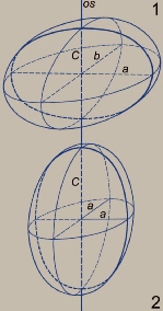 elipsoid, ploha koja nastaje rotacijom elipse oko jedne od osi. Ima tri međusobno okomite osi simetrije.