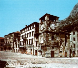 Kotor, grad i luka u Boki kotorskoj, Crna Gora; 5700 st. Smješten na ji dijelu zaljeva u podnožju Lovćena. Najstariji grad u Crnoj Gori. Predantičko ilir. naselje (središte plemena Agravonita) u koje se naseljavaju grč. kolonisti; u doba rim. uprave poznat pod imenom Acruvium. Ime K. potječe od srednjovj. lat. Catarum, naziva koji se javlja i u oblicima Decadaron, Dekatera, Cathera, Cathara i sl. Pošteđen razaranja u vrijeme doseobe naroda, postaje vodeći grad Bokokotorskog zaljeva i jedno od vodećih uporišta biz. vlasti u temi Dalmaciji. U sr. vijeku autonomna komuna s knezom i vijećima, teritorijalno obuhvaća i Grbalj, Dobrotu, poluotok Vrmac i povremeno druga naselja Boke. Od 1186–1371. pod vlašću Nemanjića, potom pod upravom hrv.-ug. vladara i bos. kraljeva. Nakon kraćeg razdoblja neovisnosti (1391–1420), tijekom kojega se brani od presezanja velikaša Balšića, Crnojevića i Kosača, K. ulazi u sastav Mlet. Republike (1420–1797). Tijekom tur. provala grad je više puta pod opsadom (1537, 1657), a stradava i od potresa (1537, 1563, 1667, 1729). U vrijeme mlet. uprave K. je upravno i gosp. središte j dijela mlet. prekojadranskih posjeda na i Jadranu (Albania Venaeta). Kotorani se ističu kao vrsni pomorci i ratnici u mlet. voj. službi, a gosp. razvoj grada zasniva se na razgranatoj pom. trgovini uzduž Jadrana i Sredozemlja. Nakon prijelazne austr. (1797–1806), ruske (1806–07) i franc. uprave (1807–13), K. se od 1813. do 1918. nalazi u sastavu Austrije te postaje njezino značajno vojno-strateško uporište i ratna luka. Ulaskom u Kraljevinu SHS (Jugoslaviju) 1918, značenje grada opada; 1941–43. pod tal. upravom, a od 1944. u sastavu Crne Gore. Grad je opasan jakim i složenim fortifikacijskim sustavom koji se započeo graditi još za biz. vladavine. Prvotna crkva sv. Tripuna kružna tlocrta podignuta je u IX. st. (sačuvan dio kamenog namještaja), potom je u XII. st. sagrađena roman. trobrodna bazilika; često pregrađivana i popravljana (nakon potresa 1667. i restauracije u XIX. i XX. st.). U njoj se nalazi oltarna pala (XV. st.) i veliki ciborij (XIV. st.) s prikazima iz života sv. Tripuna. Od roman. crkava sačuvane su sv. Luka, sv. Marija, sv. Ana i druge crkve te nekoliko kuća. Od gotičkih i renesansnih crkava i palača ostali su ugl. samo tragovi. Barok je zastupljen na brojnoj crkv. i svjetovnoj arhitekturi (Palača Pima, Providurova palača, Toranj sa satom i dr.). U XIX. i XX. st. sagrađene su mnoge veće zgrade (općina, gimnazija i dr.), a u novije vrijeme grad se jako proširio izvan gradskih zidina. K. je zaštićen kao spomenik kulture. U Pov. muzeju i riznici prvostolnice čuvaju se mnogobrojni umj. crkv. predmeti po kojima je K. bio čuven.