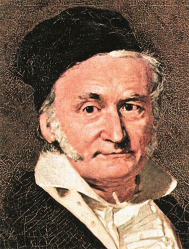 Gauss, Carl Friedrich, njemački matematičar, astronom i fizičar (Braunschweig, 30. IV. 1777 – Göttingen, 23. II. 1855). Jedan od najvećih matematičara svih vremena. Nazvan princeps mathematicorum. Profesor i upravitelj zvjezdarnice u Göttingenu (od 1807). Općenito riješio problem konstrukcije pravilnih mnogokuta nakon što je kao 19-godišnjak konstruirao pravilni sedamnaesterokut. Prvi potpuno dokazao → osnovni teorem algebre (1799). Svojim djelom Aritmetička istraživanja (1801) udario temelje modernoj teoriji brojeva. Zaslužan je za prihvaćanje imaginarnih i kompleksnih brojeva (Gaussova brojevna ravnina). U svojem djelu Teorija gibanja nebeskih tijela (1809) dao novu osnovu teorijskoj astronomiji te razradio teoriju pogrešaka mjerenja i dao metodu najmanjih kvadrata. Njegovo istraživanje zakrivljenih ploha označava novu etapu u razvoju diferencijalne geometrije (1828). Prije Lobačevskog i Bolyaia znao je za mogućnost postojanja → neeuklidske geometrije. Izračunao putanje prvih otkrivenih asteroida (planetoida) Ceresa (1801) i Palade (1802). Za potrebe astronomije izradio matematičke tablice. Našao formulu (1802) za računanje datuma Uskrsa (to je algoritam u 11 koraka). Dao je metodu rješavanja sustava linearnih jednadžbi (Gaussova metoda eliminacije, 1849). Mjerio meridijanske stupnjeve i poboljšao dotadašnje metode u geodeziji. Objavio radove o kartografskoj projekciji (Gauss-Krügerova projekcija). S W. E. Weberom istraživao zemaljski magnetizam. Postavio (1832) takozvani apsolutni sustav jedinica (→ Gaussov sustav mjernih jedinica). Konstruirao elektromagnetski telegraf (1833) koji se tehnički dalje nije razvijao. Pridonio teoriji potencijala, optici, mehanici. Po njemu je dobio ime šahovski problem od osam dama koje se međusobno ne napadaju. Od 92 moguća rješenja Gauss je našao 72.