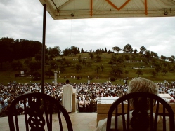 hodočašće, putovanje pojedinca ili skupine ljudi do nekoga svetoga mjesta. Javlja se u raznim religijama (hinduizam, islam i dr.). U kršćanstvu h. simbolizira život kršćana kroz trpljenje i napor puta do cilja u mjestu hodočašća. Motivi su molba ili zahvala za neku milost ili tjelesnu potrebu, te duhovna okrjepa i obnova, a cilj svetišta svetaca, Marije i mjesta čudesnih pojava. Najstariji zapisi o hodočašćima u Hrvatskoj postoje iz IX. st. o putu u Jeruzalem i o uglednim hrv. hodočasnicima u Čedadskom evanđelistaru. Postoje različita svjedočanstva o zavjetnim darovima (ex voto) Hrvata u stranim (Rim, Santiago de Campostela, Loreto) ili domaćim svetištima (Trsat, Zadar, Ludbreg, Marija Bistrica i dr.). U novije doba postoji u Hrvatskoj stotinjak hodočasničkih mjesta, većinom Marijinih svetišta.