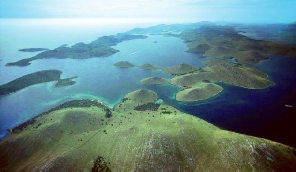 Kornatski otoci, otočna skupina u Jadranskom moru između Dugog otoka i Žirja. Ukupno 140 otoka, otočića i grebena. Površina kopna 69 km2, ukupna površina 300 km2. Građeni su od vapnenaca kredne i paleogene starosti te dolomita. Najveći otok → Kornat, ostali veći otoci Žut, Piškera (Jadra), Kurba Vela. Obuhvaća dva otočna niza: Gornje Kornate i Donje Kornate. Obale s pučinske strane strme s brojnim klifovima, najviši su na Klobučaru (80 m) i Mani (65 m). Na otocima nema vodenih tokova. Vegetacija je oskudna, prevladava kamenjar s travom i niskom makijom. U područjima s crvenicom uzgajaju se masline, smokve i vinova loza. Na otocima nema stalnih naselja. Brojna nalazišta naseljenosti iz razdoblja neolitika te iz rim. razdoblja i sr. vijeka, kada su otoci bili pod upravom grad. komore te crkv. vlasti u Zadru. Otočna skupina proglašena 1980. nac. parkom površine od 224 km2 kopna i mora.