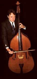 kontrabas (tal.), najveće glazbalo (o. 180 cm) u porodici gudača, razvio se iz contrabasso di viola. Građen u raznim veličinama, danas se po nekim pojedinostima razlikuju njemački (nalik na staru gambu s ravnim dnom) i talijanski tip (sličan violini). Ima četiri žice ugođene na 1E – 1A – D – G, a može imati i petu ugođenu na 1C. Zvuk se proizvodi povlačenjem po žicama gudalom, koje se drži na njemački (dlan okrenut prema gore, prsti obuhvaćaju oveću žabicu) ili talijanski način (dlan okrenut prema dolje, prsti obuhvaćaju prut gudala kao na violončelu). Glazba se piše u F-ključu, zvuči oktavu dublje od napisanoga. Upotrebljava se za orkestralno, komorno i (rjeđe) solističko sviranje te u jazzu (svira se okidanjem žica, pizzicato).