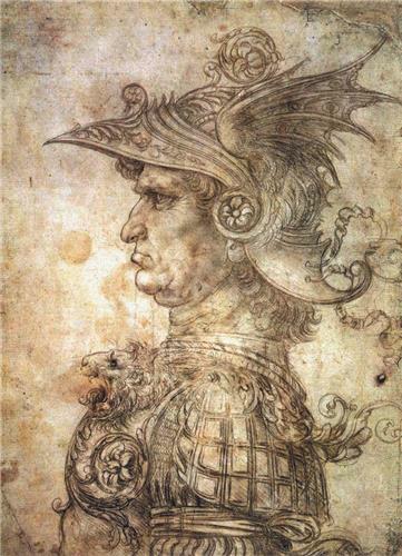 Leonardo da Vinci, talijanski slikar, graditelj, kipar, inženjer, znanstvenik i izumitelj (Vinci, kraj Empolija, 15. IV. 1452 – dvorac Cloux, kraj Amboisea, Francuska, 2. V. 1519). Školovao se u radionici → A. del Verrocchija u Firenci. Od 1482. do 1499. djelovao na dvoru vojvode Lodovica Sforze u Milanu, s prekidima naizmjenično boravio u Firenci i Milanu, od 1513. do 1516. u Rimu, a od 1517. do smrti u Francuskoj u službi kralja Franje I. Uz Michelangela, Rafaela i Tiziana, Leonardo je najpoznatiji predstavnik talijanske visoke renesanse, a kao umjetnik i znanstvenik predstavlja utjelovljenje renesansnoga čovjeka (uomo universale). U slikarskim radovima svladao je oblikovanje prostora i ljudskoga tijela (anatomski crteži, studije), domišljato se koristio perspektivnim i kompozicijskim rješenjima, a njegova čuvena sfumata, meki i prigušeni prijelazi između polusvjetla i polusjene, daju posebno ozračje slikama. Većina njegovih slika je izgubljena ili djelomično oštećena (kao monumentalna freska dramatična naboja i revolucionarnoga perspektivnog rješenja Posljednja večera, temeljito restaurirana potkraj XX. stoljeća, u refektoriju samostana Santa Maria delle Grazie u Milanu, slikana 1496–97). Osim najpoznatije slike Mona Lisa (La Gioconda), još su poznate: Madona u špilji, Navještenje, Sv. Ana Samotreća, Dama s hermelinom, Sv. Ivan Krstitelj, dok kiparska djela nisu sačuvana (golema skulptura Konjanički kip Francesca Sforze sačuvana je u crtežima). Kao graditelj radio je u Milanu (Castello Sforzesco), projektirao je urbanističke osnove za idealne gradove budućnosti. Osobito su zanimljivi njegovi crteži, rukopisi i studije biljaka, životinja i ljudskoga tijela kao i mnogih pojava u prirodi te nacrti novih izuma. Izmislio je i konstrurirao mnogobrojne naprave i strojeve kojima je genijalno anticipirao mnoge kasnije zamisli i tehnička rješenja (tenk, ronilačko zvono, podmornicu, stroj za letenje). Ispitivao je pojave u optici, akustici, hidromehanici, fizici i dr., secirao je mrtvace i na temelju toga crtao točne anatomske crteže sustava i građe ljudskoga tijela. Kao umjetnik utjecao je na većinu suvremenika, od Michelangela, Giorgionea, Rafaela i Tiziana do Dürera, Baldunga i dr. Napisao je opsežno djelo o umjetnosti Traktat o slikarstvu u kojem je na osnovi svojih zapažanja o slikanju, perspektivi, boji i svjetlosti dao dragocjene pouke korisnicima toga djela.