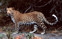 leopard (lat.) (Panthera pardus), velika zvijer iz por. mačaka (Felidae). Dug 120–150 cm (bez repa), visok 60–70 cm, težak 50–90 kg. Žuto ili crvenosmeđe krzno prošarano je nepravilno raspoređenim prstenastim tamnim mrljama. Živi samački u Africi i velikom dijelu Azije, nastanjuje savane, guste prašume i brdska područja. Izvanredan trkač, vješto se penje i po drveću. Napada divljač i stoku.