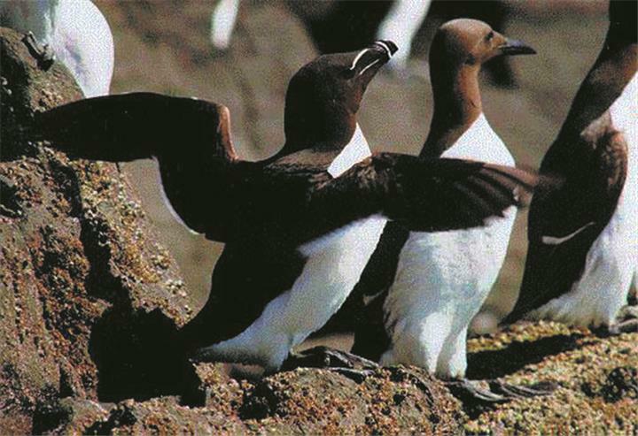 njorke (Alcidae), por. morskih ptica iz reda šljukarica (Charadriiformes). Snažna tijela, velike glave s kratkim i širokim kljunom, malih i slabih krila; imaju plivaće kožice. Drže se uspravno. Dobro rone služeći se krilima kao veslima, a nogama kao kormilom. Nastanjuju sjev. mora gnijezdeći se na stijenama u golemim jatima od stotina tisuća parova, hrane se ribom i rakovima; ptice selice. Poznate vrste plosnatokljuna (Alca torda) i mala nj. (Alle alle), debelokljuna (Uria lomvia) i tankokljuna nj. (Uria aalge). Velika nj. (Pinguinus impennis) istrijebljena sred. XIX. st.