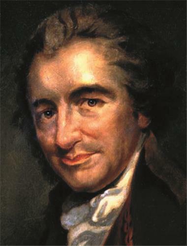 Paine, Thomas, engleski i američki politički pisac (Thetford, Engleska, 9. II. 1737 – New York, 8. VI. 1809). Emigrirao u Ameriku 1774. i radio kao novinar. Objavio anonimno politički pamflet Zdrav razum 1776. u kojem podupire Deklaraciju o neovisnosti. Sudjelovao u pisanju ustava države Pennsylvanije. Vratio se u Englesku 1787. U obranu Francuske revolucije objavljuje knjigu Prava čovjeka zagovarajući ukidanje monarhije. Optužen za veleizdaju, bježi u Francusku i postaje član Nacionalnoga konventa. Zatočen za vrijeme terora 1793–94. Vratio se u Ameriku 1802. Zagovarao pravo na otpor tiraniji, republikanski sustav i suverena prava pojedinca. Predlagao formiranje međunarodne mirovne organizacije. Umro zaboravljen. Ostala djela: Doba razuma; Agrarna pravda.