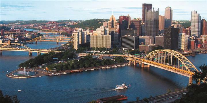 Pittsburgh, grad i važna riječna luka u jugozap. Pennsylvaniji, SAD; 316 272 st. (metropolitansko područje 2 342 155 st.). Leži na sutoku rijeka Allegheny i Monongahela, koje tvore r. Ohio (“zlatni trokut”). Prom., industr., obrazovno i trg. središte. Petrokem., kovinska, kem. ind.; proizvodnja stakla, plastike i el. opreme. U novije vrijeme razvija se ind. visoke tehnologije. U XIX. st. vodeće svj. središte proizvodnje čelika (čeličane zatvorene 1970-ih i 1980-ih). Mnogobrojni istraž. instituti. Katedrala Sv. Trojstva (1872), Prva prezbiterijanska crkva (1905). Muzeji (prirodoslovni, lik. umjetnosti, A. Warhola i dr.), kazališta, konzervatorij Phipps, planetarij i opservatorij, botanički i zoološki vrt. Sveučilišta: Pittsburg (osn. 1787), Duquesne (1878) i Carnegie Mellon (1900). Mnogobrojni koledži. Zračna luka (otvorena 1992). U P. danas živi velik broj Hrvata; sjedište Hrv. bratske zajednice. Na mjestu današnjega grada Francuzi su 1754. podigli utvrdu Fort Duquesne, koju su okupirali Britanci 1758. i preimenovali je u Fort Pitt. Današnje naselje počinje se razvijati 1764. Status grada 1816.