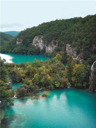Nacionalni park Plitvička jezera, sustav od 16 međusobno povezanih jezera smještenih između Male Kapele i Ličke Plješevice na nadmorskoj visini od 636 m do 503 m; površine 1,98 km2. Ime nacionalnoga parka potječe od riječi plitvice, pličine, što znači plitki bazeni. Sustav jezera dijeli se na gornja i donja jezera. Gornja su: Prošćansko jezero, Ciganovac, Okrugljak, Batinovac, Veliko (ili Crno) jezero, Malo jezero (ili Mali Jovinovac), Veliki Burget (ili Vir), Galovac, Milino jezero, Jezerce (ili Gradinsko jezero) i Kozjak. Donja jezera su: Milanovac, Gavanovac, Kaluđerovac i Novakovića Brod. Gornja jezera su veća i dublja, nastala u otvorenoj dolini u trijaskim dolomitima. Donja su manja i plića, nastala na vapnenačkoj podlozi. Najveća su Kozjak i Prošće. Jezera dobivaju vodu iz Crne i Bijele rijeke, koje se neposredno prije Prošćanskoga jezera udružuju u zajedničku Maticu. U jezero Kozjak utječe Rječica, a iz njega istječe Korana. Nakon slapa Sastavci jezerska voda utječe u Koranu i potok Plitvice. Najviši slap je vodopad Plitvice (78 m), ujedno i najviši u Hrvatskoj. Dužina jezera prema uzdužnom profilu iznosi oko 9 km. Oko jezera nalazi se veći broj spilja (Šupljara, Golubnjača). Tijekom zimskih mjeseci voda u jezerima i slapovi se lede, a ljeti temperatura vode iznosi i do 24 °C. Jezera su međusobno odvojena sedrenim barijerama i povezana su slapovima. Godine 1949. proglašena su nacionalnim parkom (296,8 km2; prvi hrvatski nacionalni park), a od 1979. na UNESCO-voj su listi zaštićene svjetske prirodne baštine. U nacionalnom parku raste 1146 biljnih vrsta, od kojih su brojne endemične, npr. uskolisno zvonce (Edraianthus tenuifolius), žabnjak kolovrc (Ranunculus scutatus), livadni procjepak (Scilla litardierei) itd. U parku rastu i 44 biljne vrste zaštićene u Republici Hrvatskoj, a od životinjskih vrsta mogu se pronaći medvjed, vuk, ris, vidra i sova jastrebača. Tijekom godine park posjeti više od milijun posjetitelja.