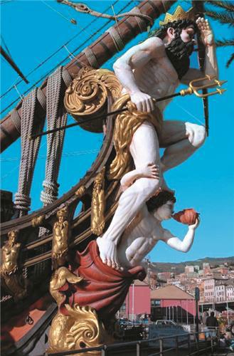 , ukrasna figura na pramcu jedrenjaka; obično ženski (divica) ili životinjski lik (bestion, zvir). Služila kao simbol ili zaštita od uroka.