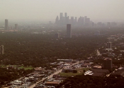 smog (od engl. smog i fog), zrak onečišćen nagomilanim produktima izgaranja (čađa, ugljični dioksid, sumporni dioksid) nastalih emisijom industr. dima i automob. ispušnih plinova. Pojavljuje se u urbaniziranim područjima u vrijeme inverzije temperature koja sprječava širenje dima u visinu.