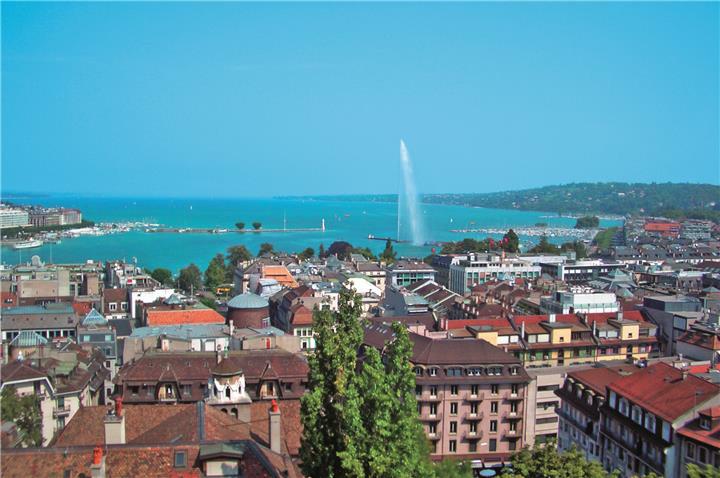 Ženeva (franc. Genève, njem. Genf, tal. Ginevra), gl. grad istoimenoga kantona (282 km2, 438 100 st.) u krajnjem jugozap. dijelu Švicarske, na obali istoimenoga jezera gdje r. Rhône istječe iz jezera; grad 179 500 st., metropolitansko područje 613 400 st. Rhône dijeli grad (povezan sa sedam mostova) na dva podjednako velika dijela: juž., stariji dio grada, u kojem je danas financ. i ekon. središte, i sjev., noviji dio grada, koji je danas ugl. stamb. područje. Trg., prom. i financ. središte (mnogo banaka i osiguravajućih kuća), sjedišta međunar. organizacija: UN za Europu (prvotno sjedište Društva naroda), Svj. zdrav. organizacije, Svj. trgovinske organizacije, Crvenoga križa, Svj. meteorološke organizacije, Eur. vijeća za nuklearna istraživanja (CERN) i dr. te multinac. kompanija. U Ž. su održane mnoge važne međunar. konferencije, polit. i znanstv. skupovi. Proizvodnja satova i nakita, mjernih i preciznih instrumenata, el. opreme, strojeva; kem., prehr. i duhanska ind.; turizam. U okolici povrtlarstvo, voćarstvo, vinogradarstvo, stočarstvo. Sveučilište (XVI. st.), poznata urarska škola i dr. Katedrala sv. Petra (XII–XIII. st.); grad. vijećnica (XVI. st.), grad. operna kuća Grand Théâtre, rodna kuća J. J. Rousseaua, muzeji. Kozmopolitski grad u kojem žive ljudi podrijetlom iz gotovo svih dijelova svijeta.
