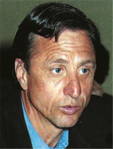 Cruyff, Johan, nizozemski nogometaš (Amsterdam, 25. IV. 1947 – Barcelona, 24. III. 2016). Viceprvak svijeta s reprezentacijom na svjetskom prvenstvu 1974, treći na europskom prvenstvu 1976. U dresu Ajaxa triput osvojio Kup europskih prvaka (1971–73), triput proglašen europskim nogometašem godine. Bio je trener FC Barcelone s kojom je osvojio Kup europskih prvaka 1992. i Kup pobjednika kupova 1989.