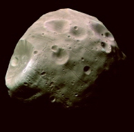 , bliži Marsov satelit nepravilna oblika (vel. 27×19 km) koji oko Marsa obiđe za vrijeme kraće od Marsova dana, tj. za 7 h i 39 min.