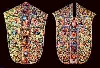 liturgijsko ruho, odjeća i oprema koju svećenici nose pri obavljanju kršć. bogoslužja. Od važnijih i raskošnijih su: misnica (kazula), dalmatika i plašt (pluvijal), redovito od skupocjenih tkanina, urešeni čipkom i vezom, katkad s lik. prikazima, te pastirski… Nastavi čitati →