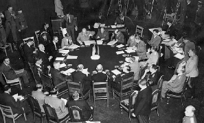 Potsdamska konferencija, sastanak u Potsdamu (17. VII. – 2. VIII. 1945), amer. predsj. H. Trumana, sovj. vođe J. V. Staljina i brit. premijera W. Churchilla (nakon njegova poraza na izborima C. Atleeja) o preustroju poražene Njemačke.… Nastavi čitati →